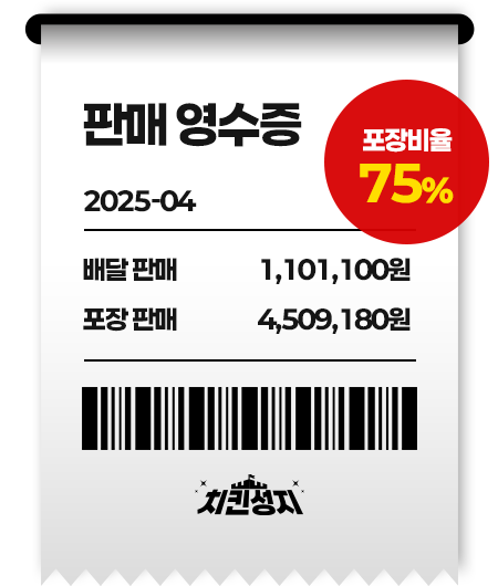 남는거 많은 치킨성지 판매 영수증을 눈으로 확인하세요